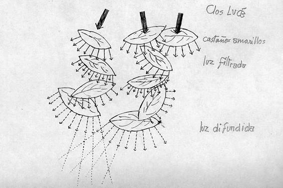 Fig. 03. Dibujo de la luz filtrada por las hojas de castaños en otoño, parte de los esquemas del estudio de Miguel Eyquem sobre la luz para la iglesia Santa Clara, c. 1954.