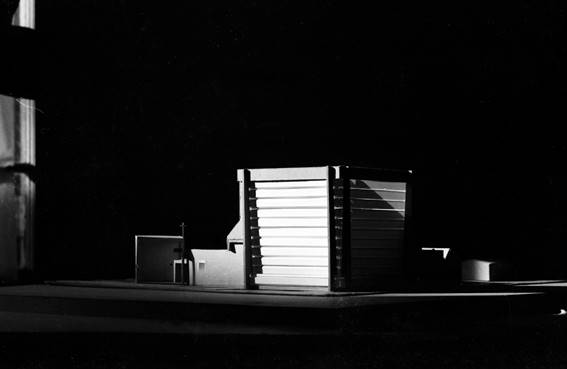 Para diseñar los muros del cubo, Miguel Eyquem desarrolló modelos a escala natural que le permitieron experimentar directamente con la luz. A diferencia de los modelos a escala real empleados por los arquitectos para presentar sus proyectos a clientes o evaluar el desempeño de materiales y formas, los modelos de Eyquem tenían un carácter puramente experimental (Mindrup 2019). Los registros fotográficos muestran estructuras cúbicas de tres a cuatro metros de altura, en las que ensayó muros segmentados con elementos horizontales acanalados que permitían el ingreso controlado de luz indirecta. La invención de Eyquem se basaba en el estudio de la reflexión del rayo lumínico, que dirigía hacia el interior mediante superficies reflectantes: