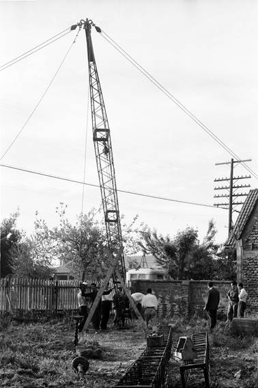 Fig. 10. Estudiantes del Taller Santa Clara instalando estructuras para estudiar el volumen del edificio a escala natural, c. 1956.