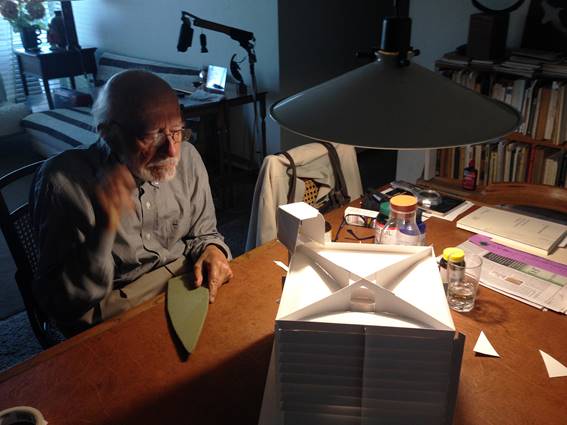 Fig. 14. Miguel Eyquem trabajando en una maqueta de la capilla San Agustín, c. 2017.
