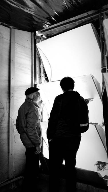 Fig. 15. Modelo 1:1 para experimentar la curvatura del muro de la capilla San Agustín, c. 2018.