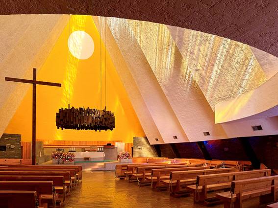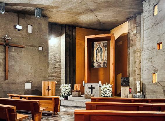 Fig. 12. Antonio Attolini Lack, iglesia parroquial de la Santa Cruz del Pedregal, Ciudad de México, 1955-68; capilla de Guadalupe.