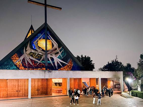 Fig. 01-02. José Villagrán García (proyecto original), Antonio Attolini Lack (proyecto final), iglesia parroquial de la Santa Cruz del Pedregal, Ciudad de México, 1955-68.
