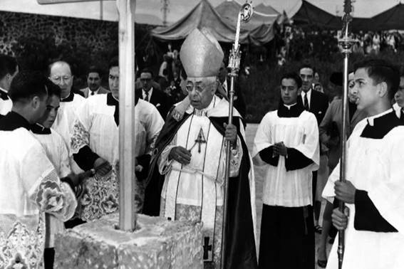 Fig. 05. Bendición de la primera piedra de la Santa Cruz del Pedregal (11 de septiembre de 1955).