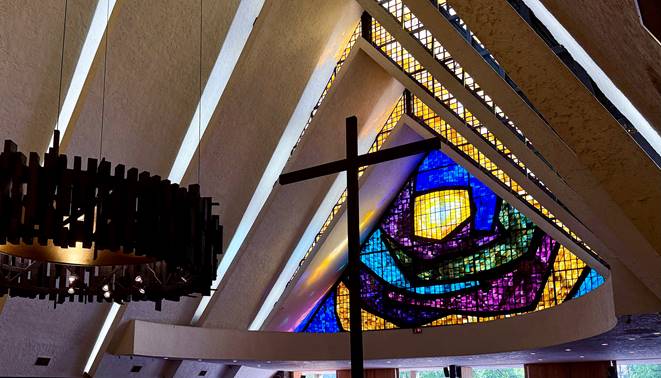 Fig. 15. Manuel Arellano M.Sp.S., vista interior del vitral principal de la iglesia (1968).