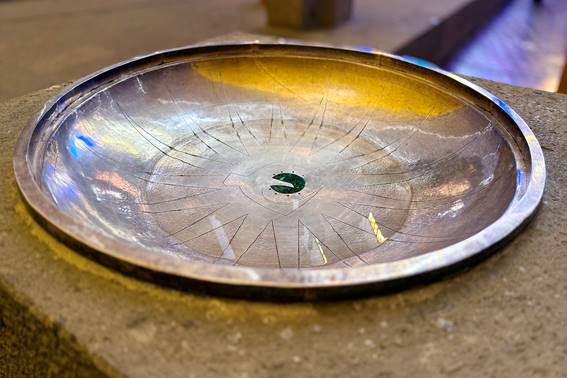 El gran vitral que adorna la fachada del templo y el vitral cenital ubicado en uno de los costados son obra del padre Manuel Arellano M.Sp.S., quien llegó a la parroquia junto con Corona en 1967 (Fig. 14-15). Habiendo realizado estudios de arte antes de ingresar a la congregación, Arellano fue otro participante clave en las modificaciones al proyecto. Su obra pictórica y su influencia en la estética que caracteriza a los Misioneros del Espíritu Santo es merecedora de un estudio profundo aún ausente. Por otro lado, las esculturas de la Virgen María y san José con el Niño Jesús, el Cristo crucificado en la capilla del perdón, así como los relieves de la Piedad y la Resurrección en la capilla de las criptas, son obra de Herbert Hofmann-Ysenbourg, escultor alemán radicado en México. Elementos como la pila bautismal, el sagrario, el baldaquino y las bancas fueron fabricados por diversos artesanos bajo la dirección del arquitecto, destacando el trabajo en plata del taxqueño Elías Alvarado (Fig. 16). Attolini también diseñó casullas y objetos litúrgicos, que reflejan no sólo su propia sensibilidad estética sino también la de los Misioneros.