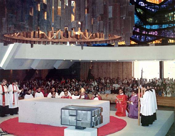 Fig. 17. Ceremonia de consagración de iglesia parroquial de la Santa Cruz del Pedregal (16 de agosto de 1968).