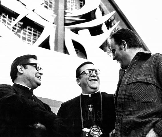 Fig. 19. Pedro Corona M.Sp.S, Manuel Arellano M.Sp.S y Antonio Attolini, el día de la consagración de la iglesia parroquial (16 de agosto de 1968).