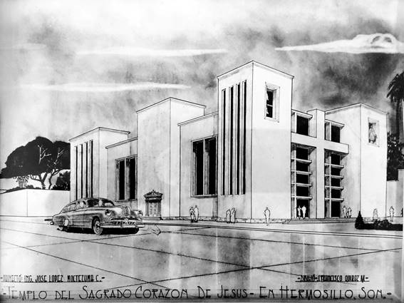 Fig. 05. José López Moctezuma Pineda y José López Moctezuma Cumming, Templo del Sagrado Corazón de Jesús, Hermosillo (Sonora, México), 1950; proyecto.