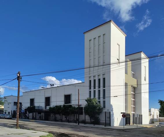 (1947), cuyas instalaciones se encontraban cuatro cuadras al norte del templo.