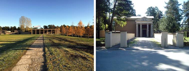 Asplund and Mies van der Rohe. Through its portico and peristyle structure,
