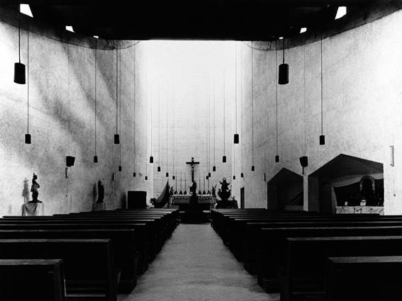 Fig. 01. Carlos Raúl Villanueva, La Asunción de Nuestra Señora, Caracas (Venezuela), 1957-59; vista de la iglesia en los años 60.